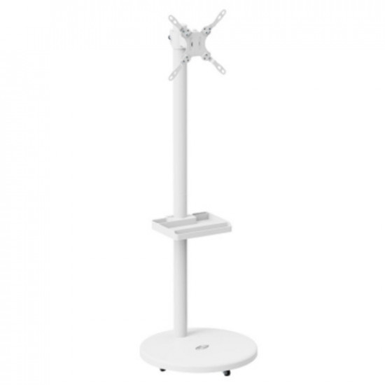 TV스탠드 / 이동형 / 화면크기:17~43형 / 적재무게:15kg이하 / 상하각도조절 / 좌우각도조절 / 피벗 / 높이조절 / 상하각도(틸트):±35도 / 좌우각도(스위블):±90도 / 높이조절(엘리베이션):1100~1300mm / 이동바퀴 / 선반 / 케이블수납 / 베사홀:75x75mm,100x100mm,200x200mm